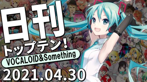 2021/4/30付けの合成音声歌唱トップテンです! ☆集計対象:2021/4/23~30 5時までに投稿の作品(4/30 5時集計) 昨日の1位は初音ミクでした。さて今日は…!?