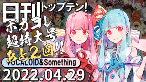 2022/4/29付けの合成音声歌唱トップテンです! 表紙は昨日の1位、琴葉葵・茜です。さて今日は…!?