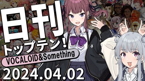 2024/4/2付けの合成音声歌唱トップテンです!表紙は昨日の1位、夏色花梨・小春六花です。さて今日は…!?